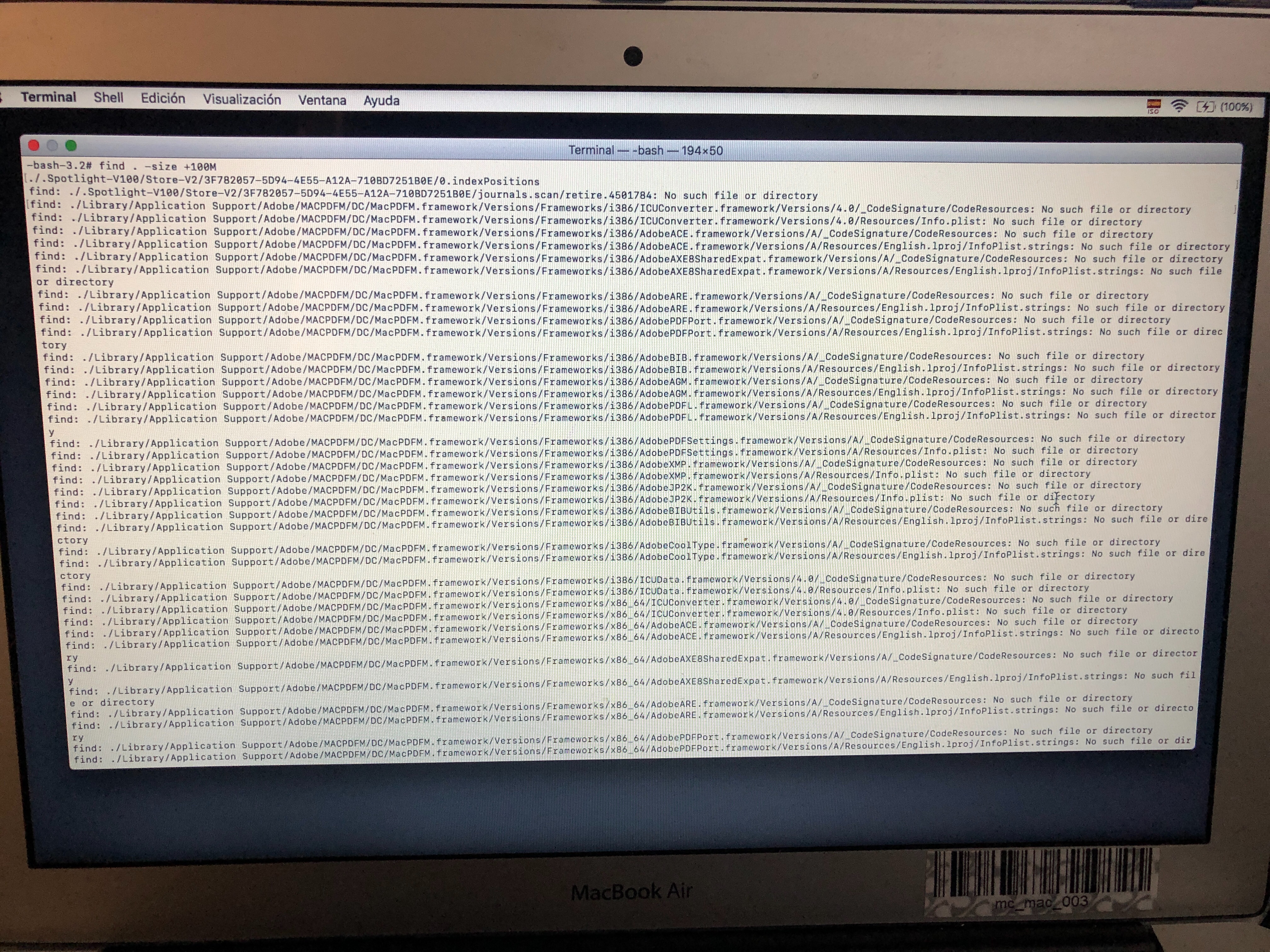 also when I try to find larger files on the disk on the search all files said no such file or directory