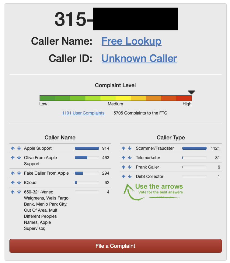 I'm sorry I was not clear. The scammer did not call from 315-232-****. This is the call back number they give which has not changed in over a year. You can call them. Apple can call them and talk directly to the scammers. I'm telling Apple exactly who is calling. So is everyone else so Apple doesn't have to use magic to know who is calling. We are telling them who is calling. They are falsely claiming to represent Apple. You think this would concern Apple.