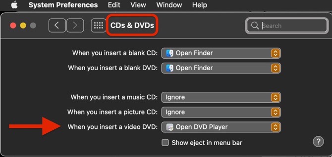 and select Open DVD Player when a video DVD is inserted into the drive.