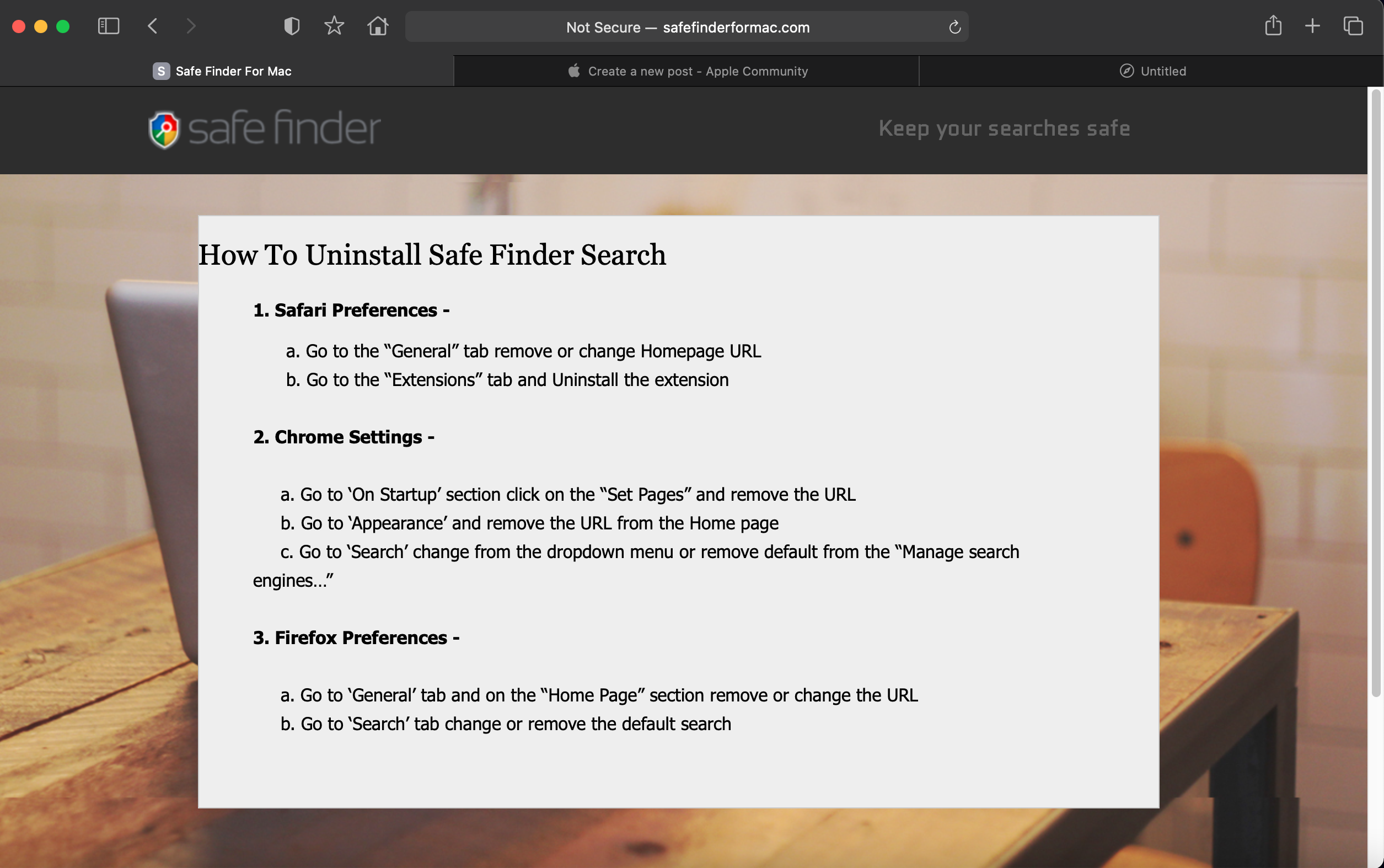 my MacBook Air 2019 just got upgraded to Big Sur but safari homepage preference got locked (greyed out). the homepage now goes to "safe finder" search page which no one feel "safe" at all.