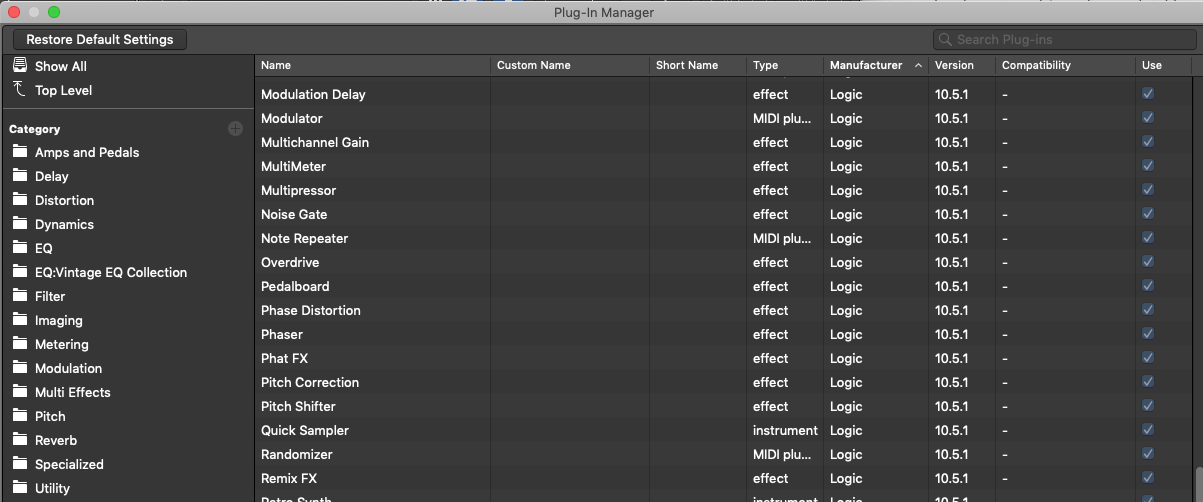 I am missing category for "Multi Effects" in logic pro 10.5.1