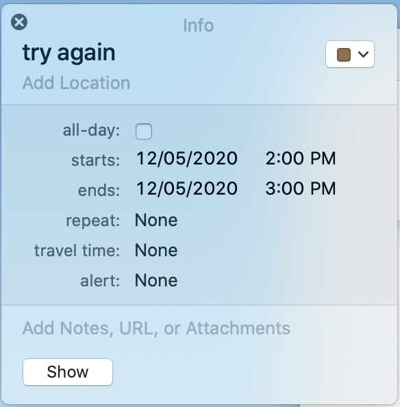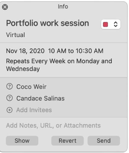 calendar invites and edits in Catalina