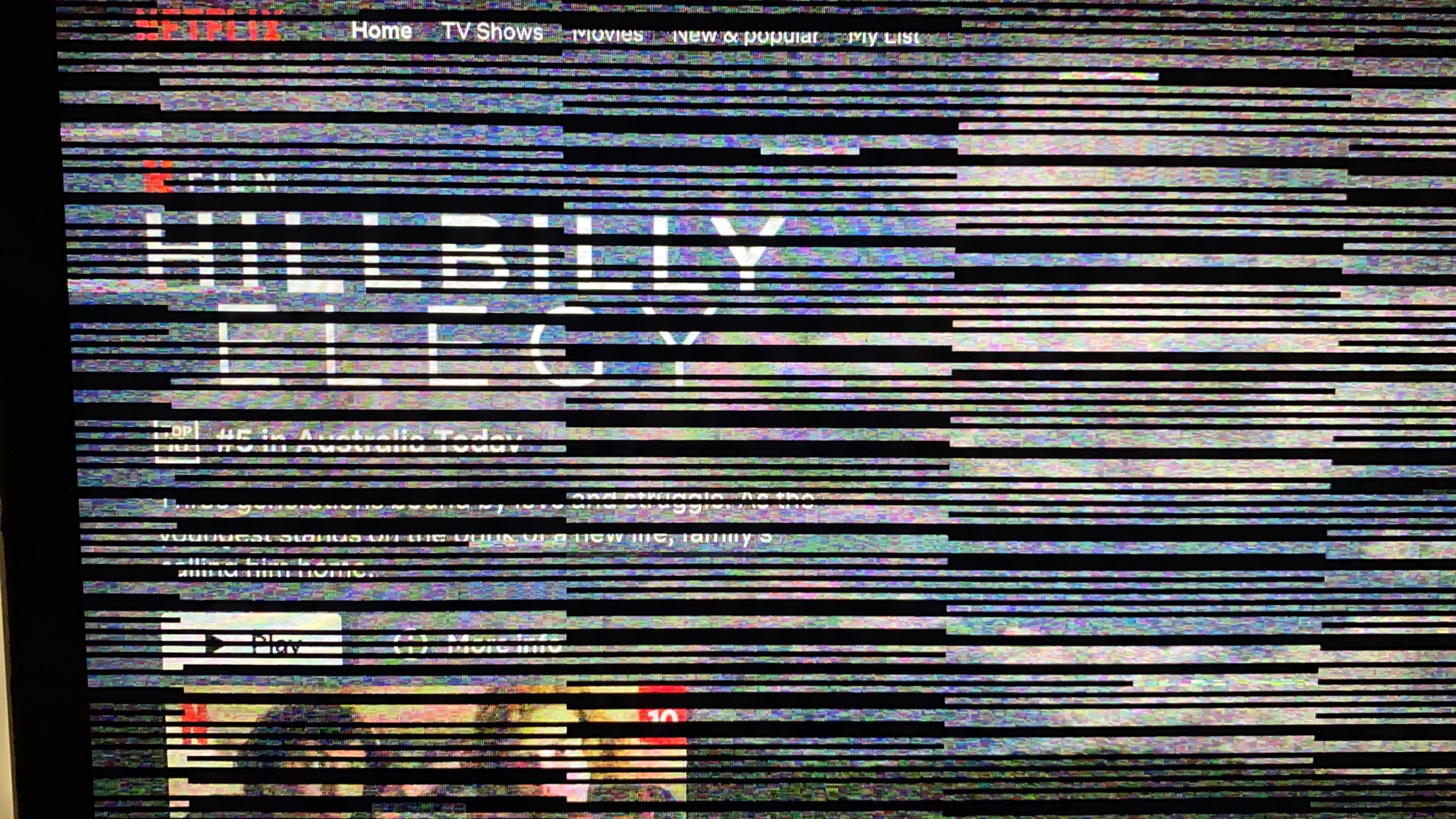 Horizontal black and white lines then turns off