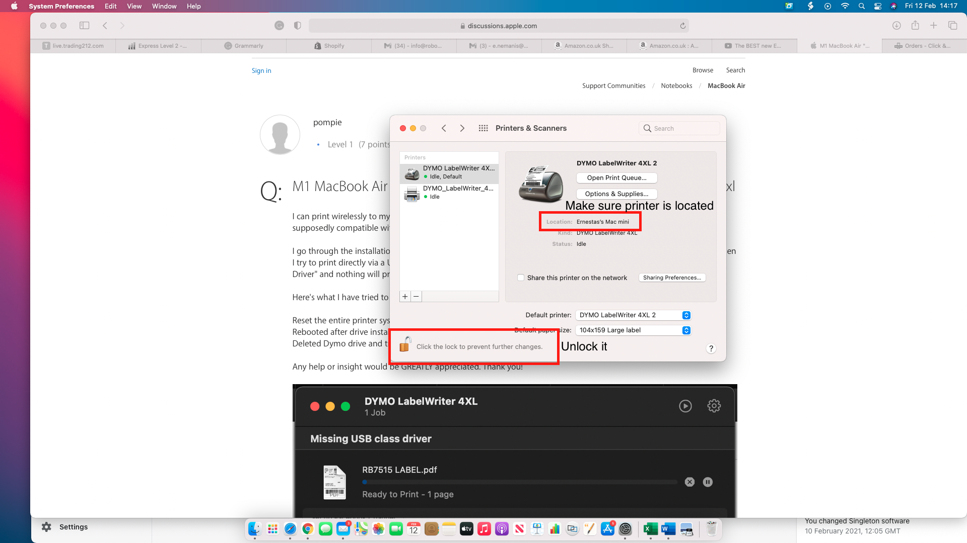 M1 MacBook Air "Missing USB Class Driver" when trying to print to Dymo 4xl