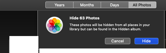 You have hide complete photos from Mac / iPhone from the photo application , used command and A keys to select them and used command and L to hide them from Mac see the article https://support.apple.com/en-us/HT205891