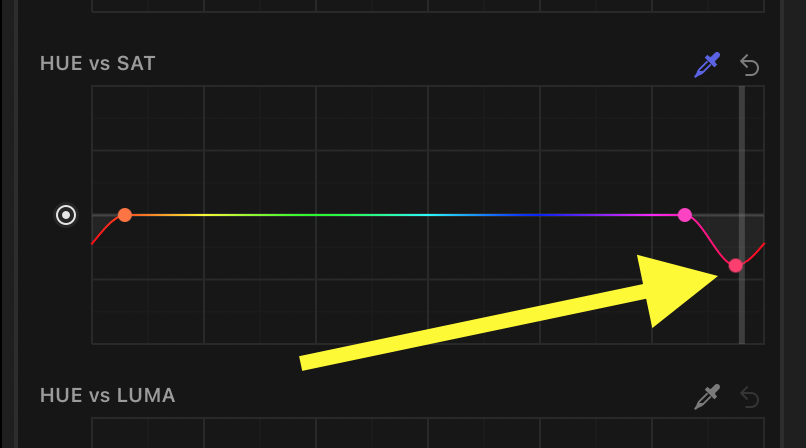In the color corrector, switch to the Hue/Saturation curves.