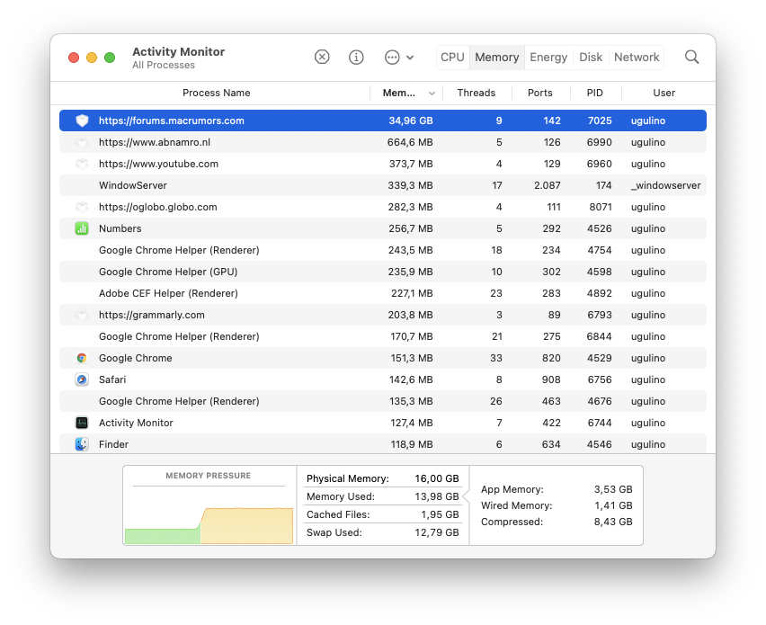 Just about daily, my new M1 MacBook Air starts to run warm (thought they were SO much cooler now) and then I get a popup to ForceQuit my applications with the message, "your system has run out of application memory" (and showing me that Safari is using the most memory by far). In fact, I checked the RAM usage and its showing 6.3gb out of 8gb. Im wondering is this simply a RAM issue and I should return/exchange for the 16gb model?