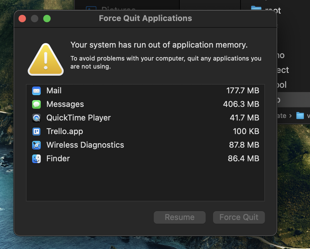 NEW MacBook Air M1 8gb 256gb: "your system has run out of application memory"
