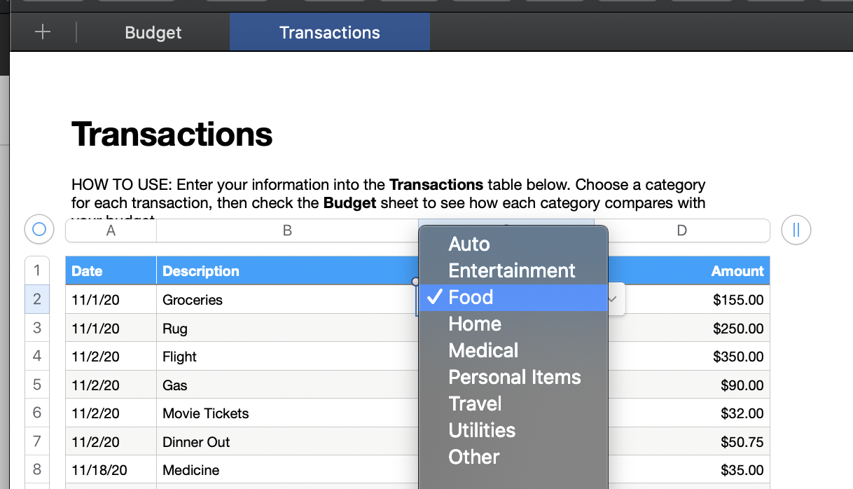 Everytime i attempt to edit the categories section (on the transaction sheet) "Monthy Budget" it will not work. For example "Home, Travel, Auto, Entertainment" are all options built into the template but i want to create my own spending categories adn everytime i attempt to edit the current categories it just deletes what i typed and reverts back to original. So dang frustrating. What is going on? The numbers app is up to date (10.3.5) and my macbook is also up to date. PLEASE HELP!