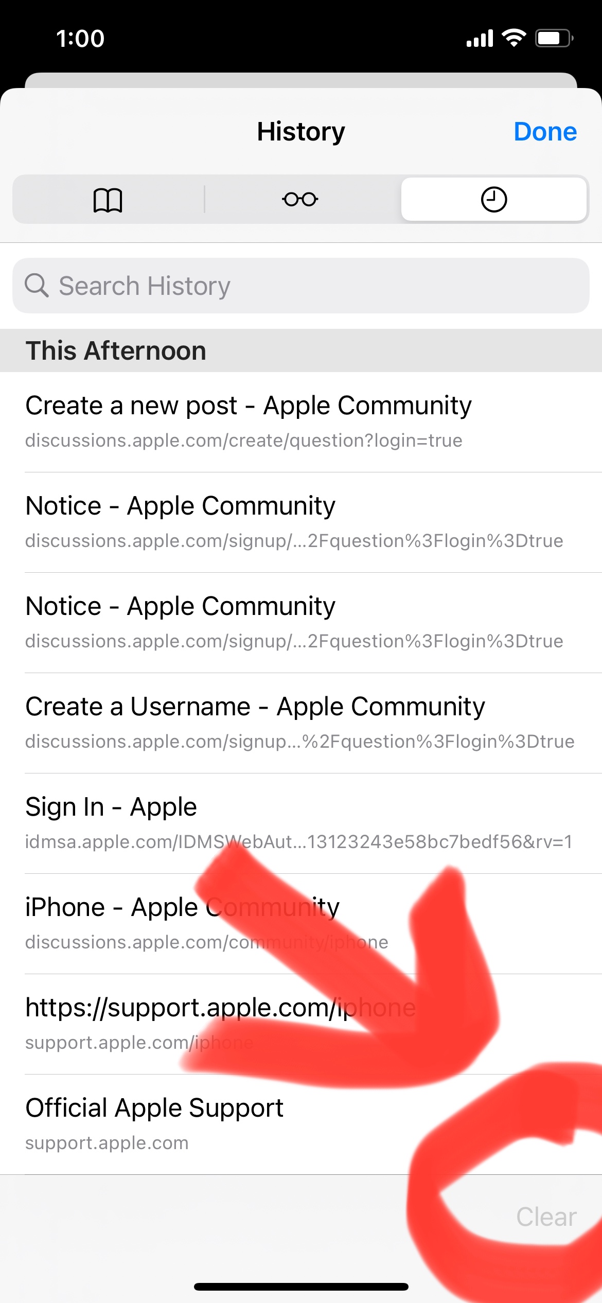 Problem with clear history is safari