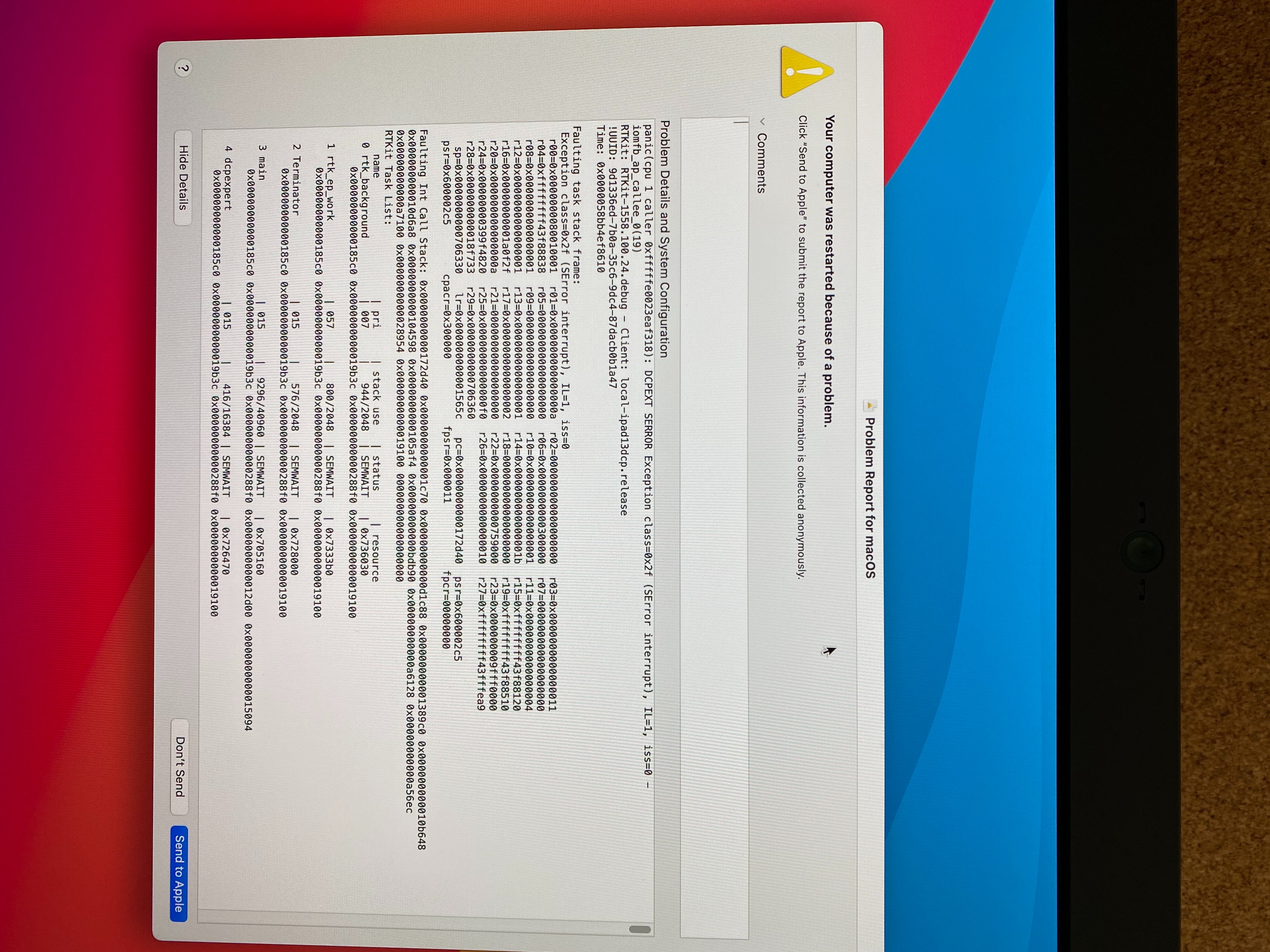 • sometimes there's a kernel panic, after a while reboots itself, asks for windows reopen etc.