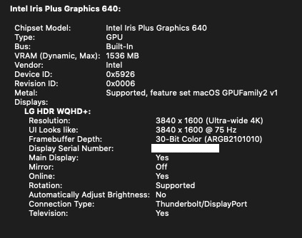 So, again, setting the DP port on the monitor for the Thunderbolt input to DP 1.2 seems to have resolved the issue for me as well. I still have the it set to DP 1.4 on the standard DP input port on the monitor, which is connected to my PC.