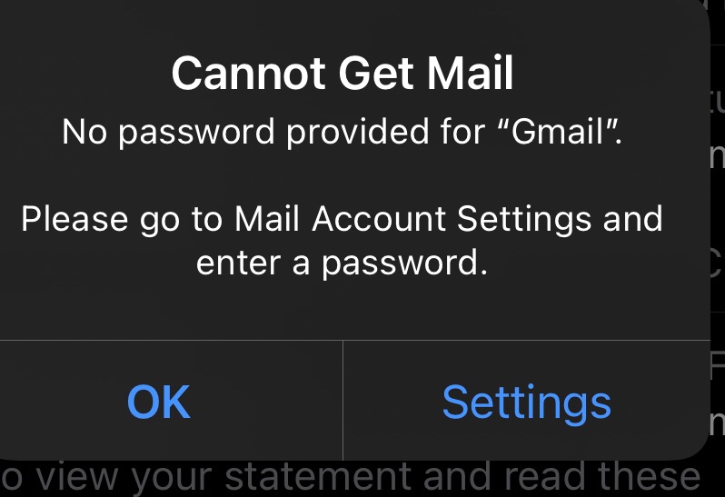"If the Mail apps asks you to enter a password for your email account, make sure that your password is correct. To check your email address and password, sign in to your email provider's website."
