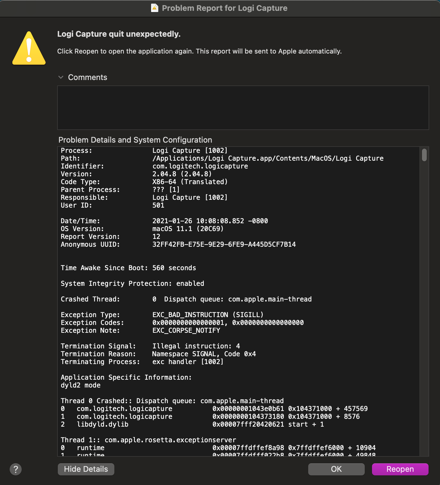 If I try simply to open the application, I get this... and no matter how many times I try, I am unable to open the program.. This happens with other applications as well such as the download to run the PreSonus Studio24C interface for my condenser mic. The Rosetta option simply does not show up. Any suggestions would be much appreciated.