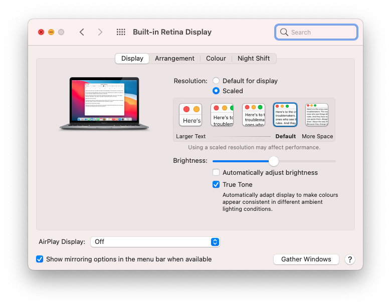 First, I have noticed the built-in display sometimes flickers if the resolution is scaled down. Scaling it back to default seems to fix the problem. Anyone else seeing this? I want to make sure it's a software and not a hardware issue.