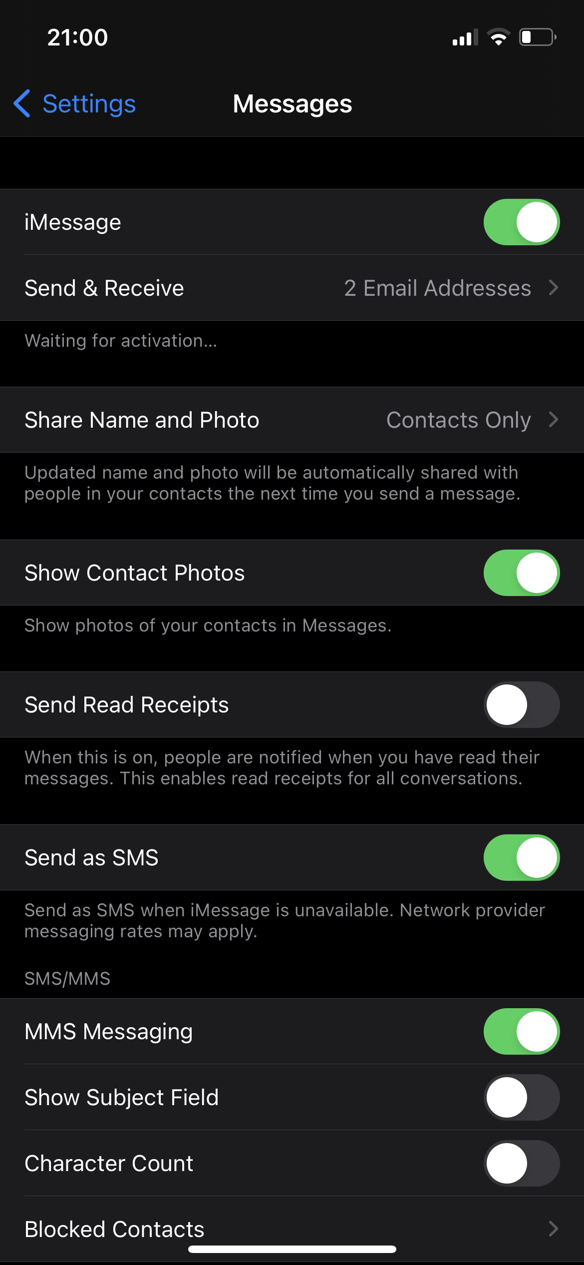 If iMessage successfully activates, you can then sign back in to your Apple ID in the Send & Receive section if you'd also like to use that address as a way to send and receive messages.
