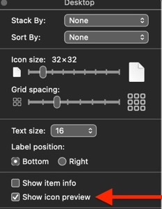 While in the Desktop to to the View menu and select Show View Options. There make sure this checkbox is checked: