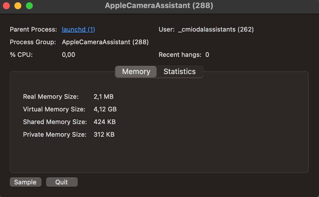 I keep looking into anything related to camera inside MacBook, and found something strange: there is a process running as "AppleCameraAssistant" when my SystemReport/Hardware/Camera showed: "No video capture devices were found."