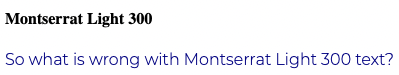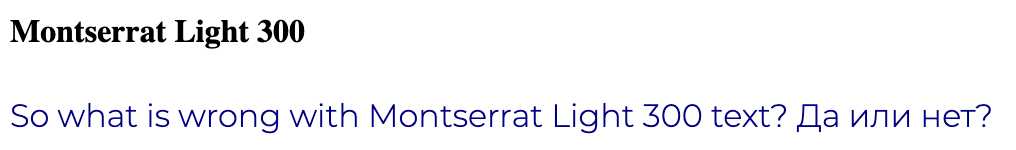 What happened to Google's Montserrat font in Safari on macOS Big Sur and iOS 14? It does not display correctly. In all other applications and other browsers, this font looks correct, but in Safari it is replaced by a font with a completely different style.