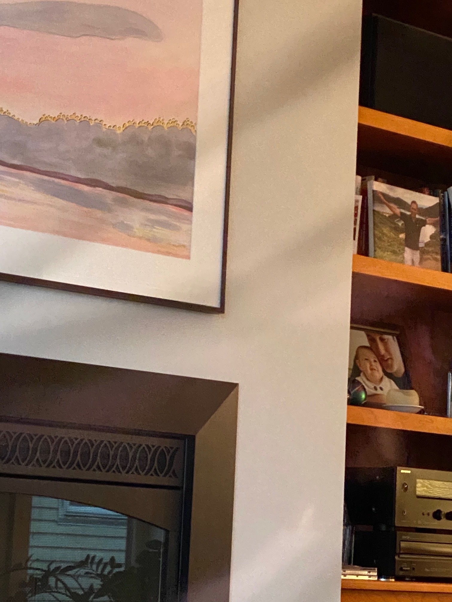They look like patches of light and shadow on the wall. (It is possible the camera might be more sensitive to them than your eye). If not, then I've no idea what could cause that.