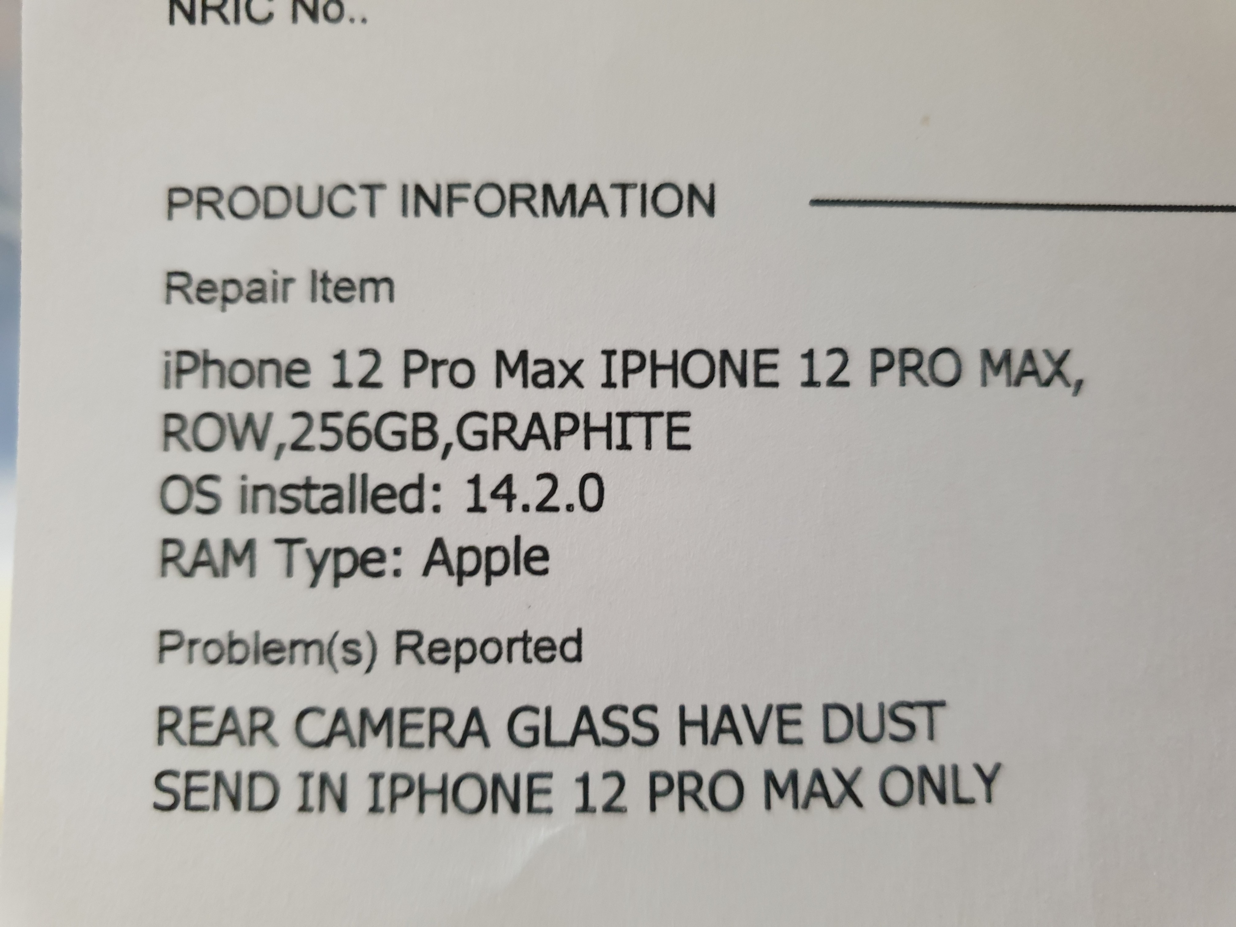 [iPhone] Dust particles found inside the camera lenses of an iPhone 12 Pro Max (Malaysia)