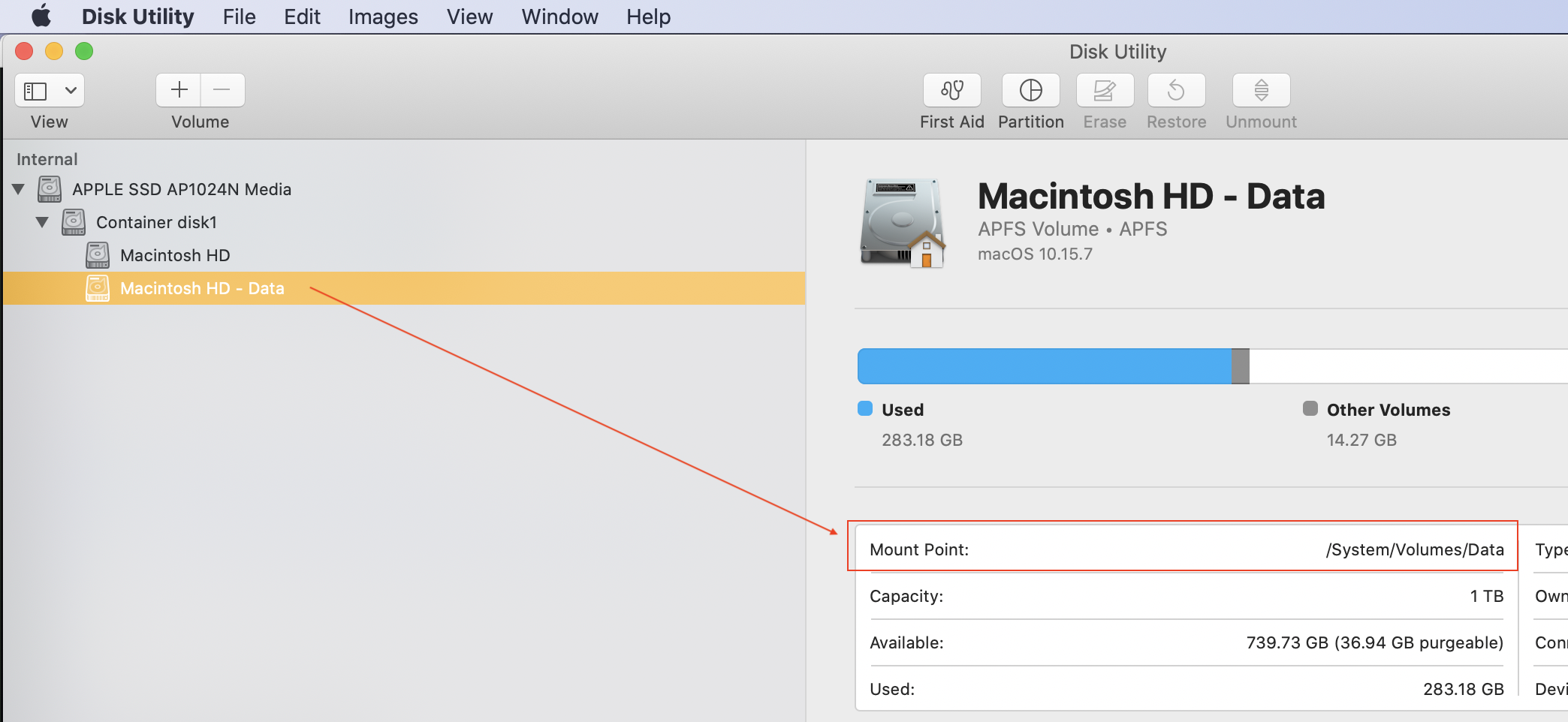 Also, there's nothing in the "- Data" drive; it shows zero contents. Everything is on the main drive. is that correct?