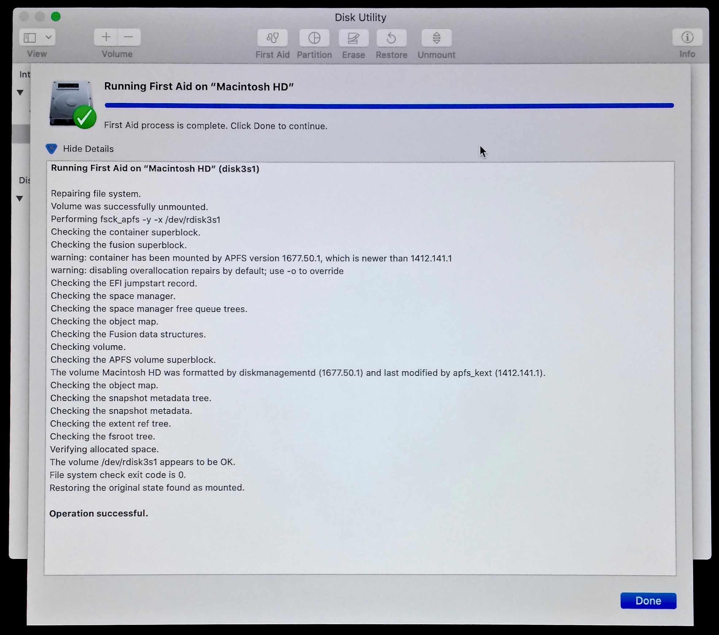 I ran First Aid on everything. All came back "ok" but there were a couple of warnings: