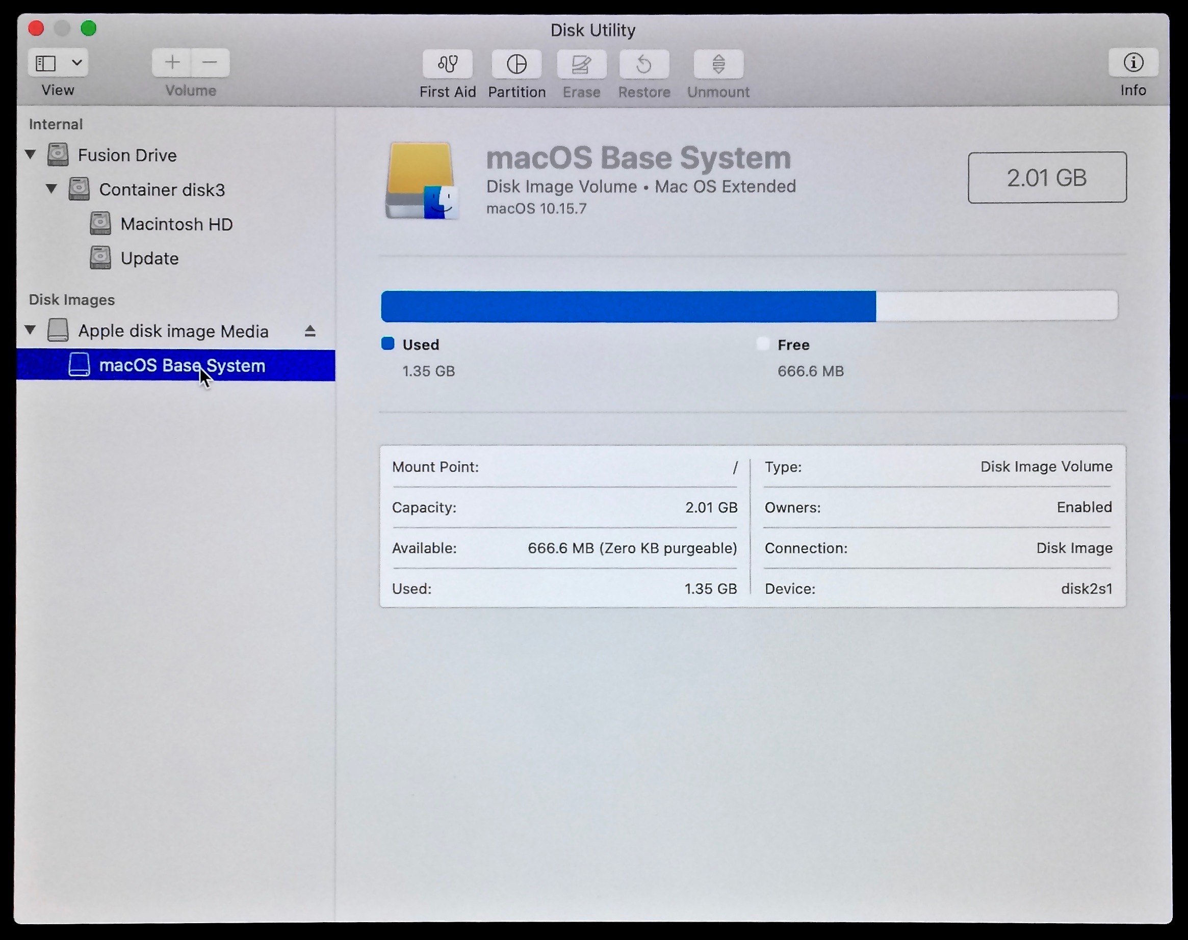 • Apparently, erasing and reformatting took me back to a macOS Base System Catalina (10.15.7).