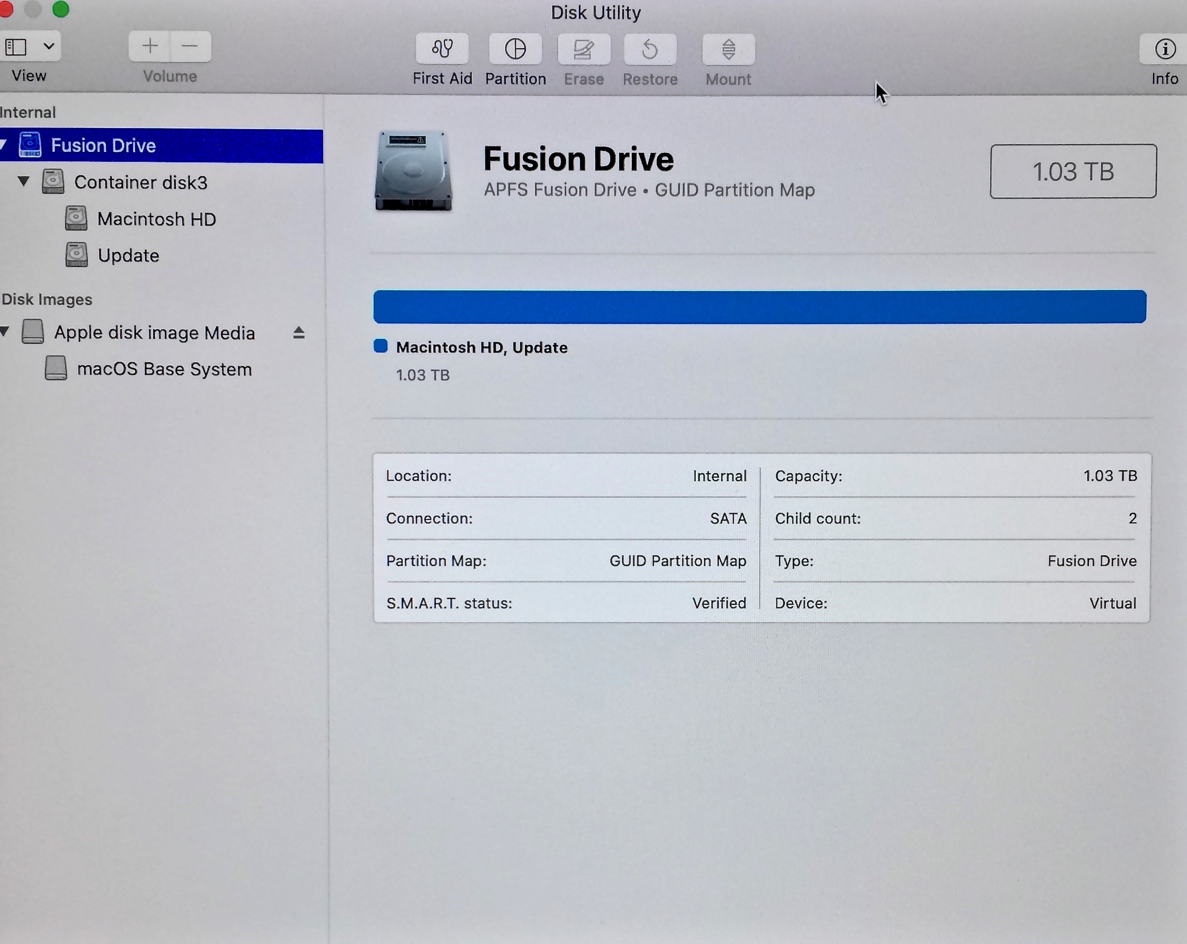 - According to Disk utility the 1 TB of space is shared by 5 volumes. 3 of which are not mounted and take up 7.74 GB. I am not sure what those 3 are, even after running diskutil list.