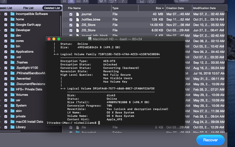 MacOS stuck decrypting