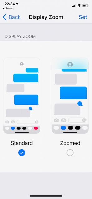 My eyes are no longer what they used to be and I decided to switch from the 'Standard' to the 'Zoomed' display mode in my 'Display and Brightness' settings.