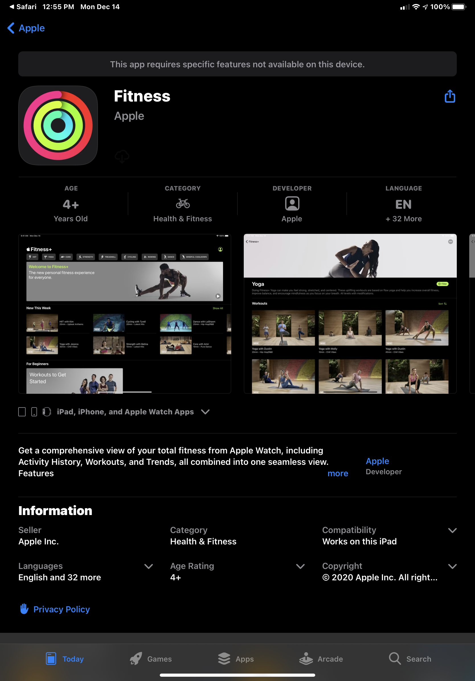Fitness isn’t showing up on my iPad app store