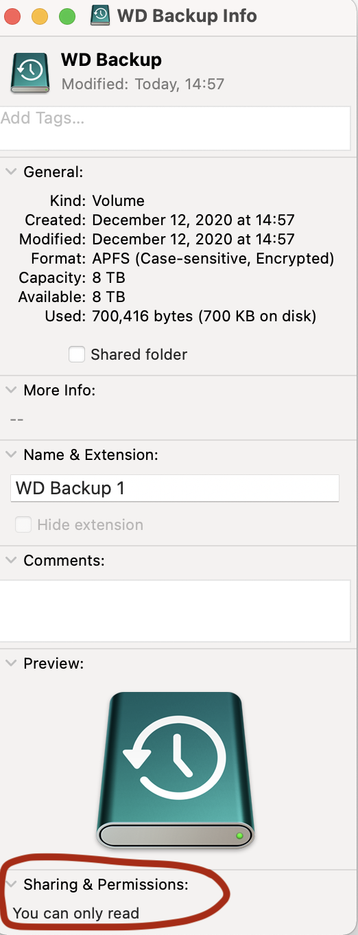 - The drive would then become "you can only read". Permissions for the drive were not changeable. I returned the drive, presuming it is faulty.