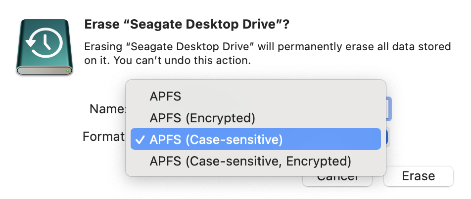 - I ordered a Seagate drive, after vowing to stay away from WD. The exact same problem is occurring again. Time Machine asked for the disk to be erased first. It then became a read only disk and Time Machine itself could not access it.