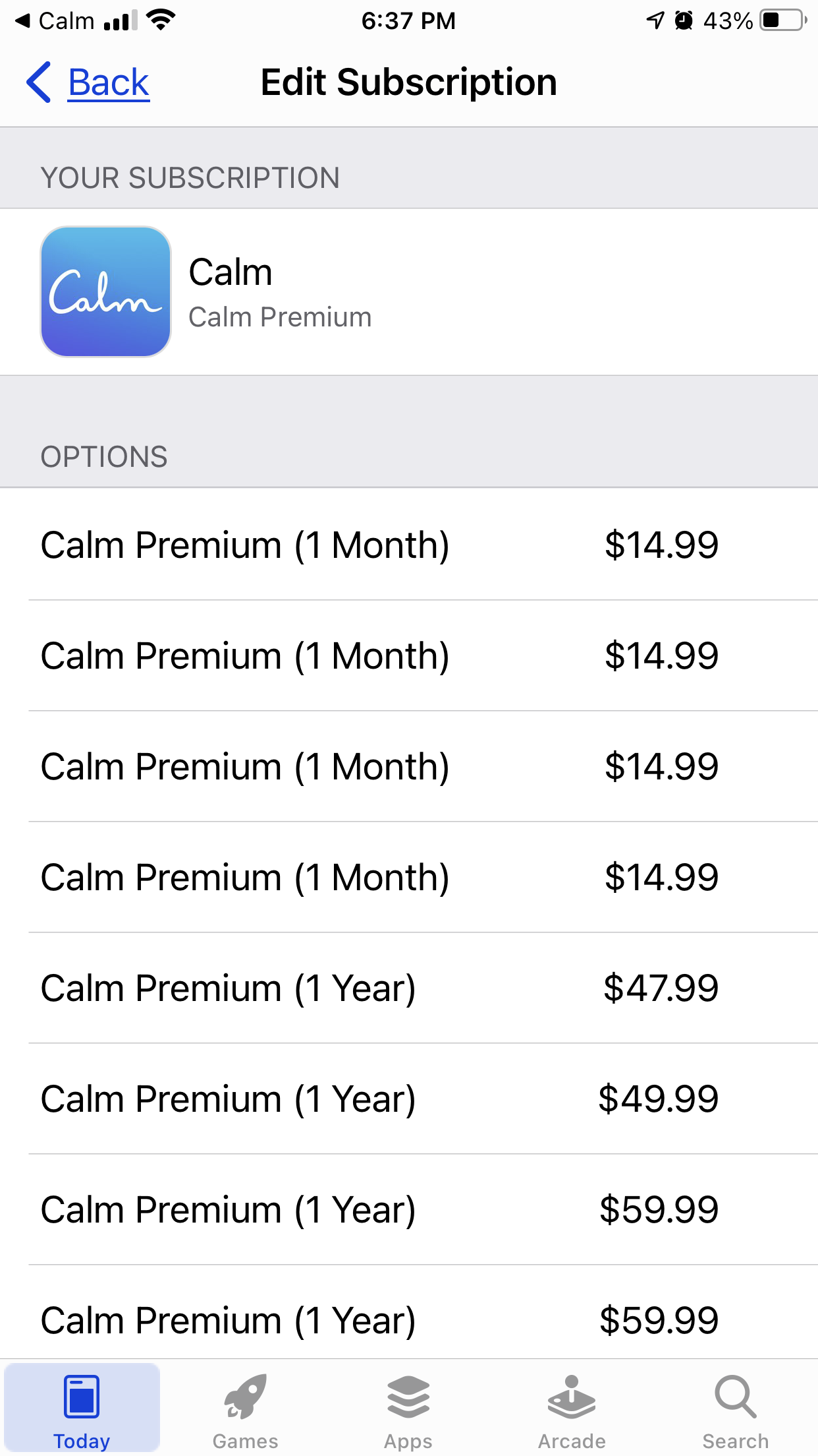 Here is NO cancel subscription option. I have also tried to cancel at calm.com.