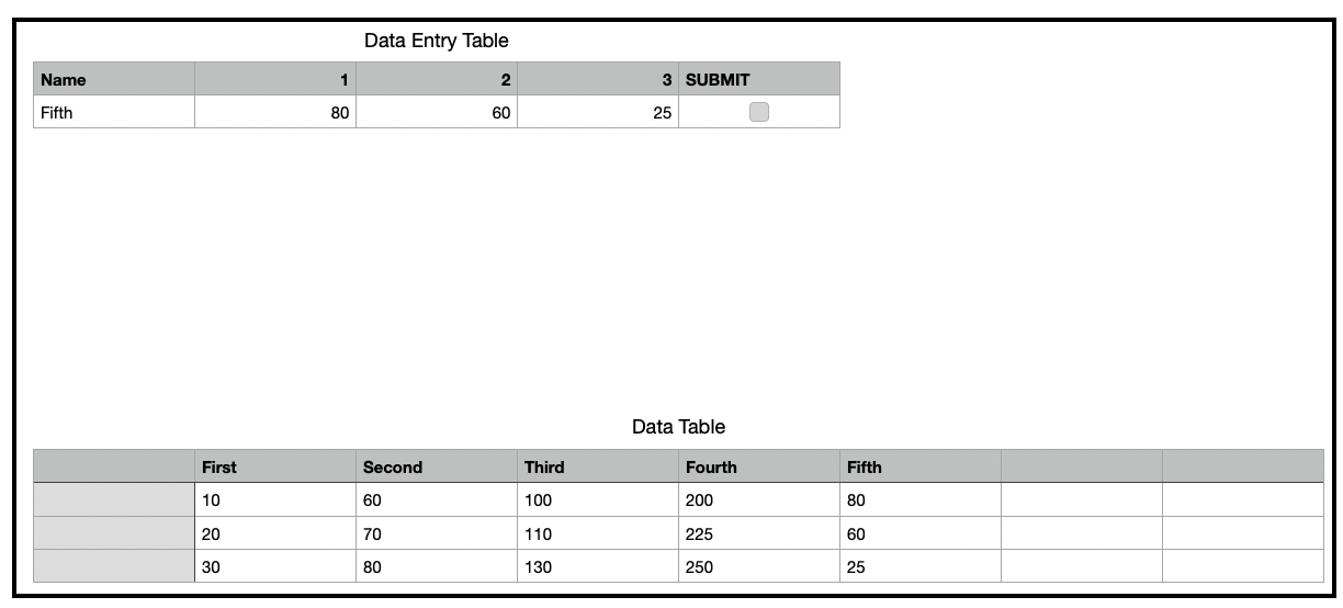 I'd also like to make a 'Data Entry Table' that allows me to enter specific data that would automatically sent the data to the first blank column on the data table.