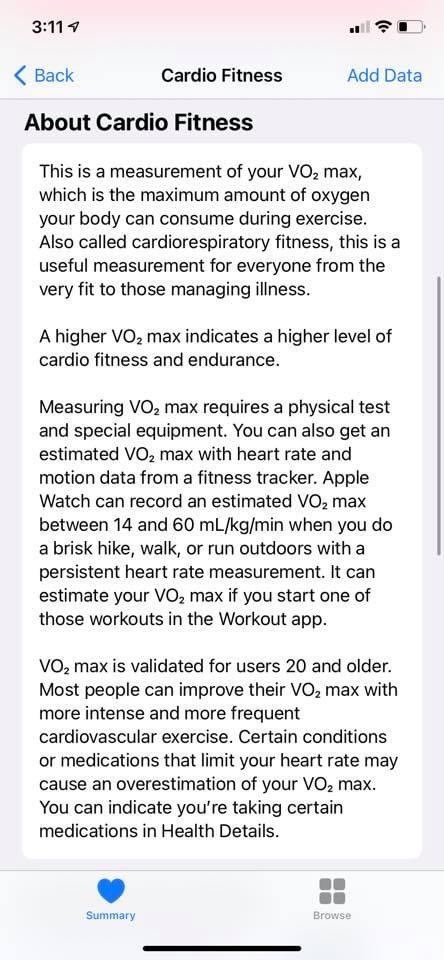 I thought I had figured out a solution yesterday when I went to the Health app, went to VO2 Max, scrolled to “Show All Data,” and deleted all the data collected from walks and hikes. However, my support specialist said that this might be deleting data universally and not just from what VO2 is collecting, so I don’t want to do that anymore in fear that I’m deleting data from other metrics as well.