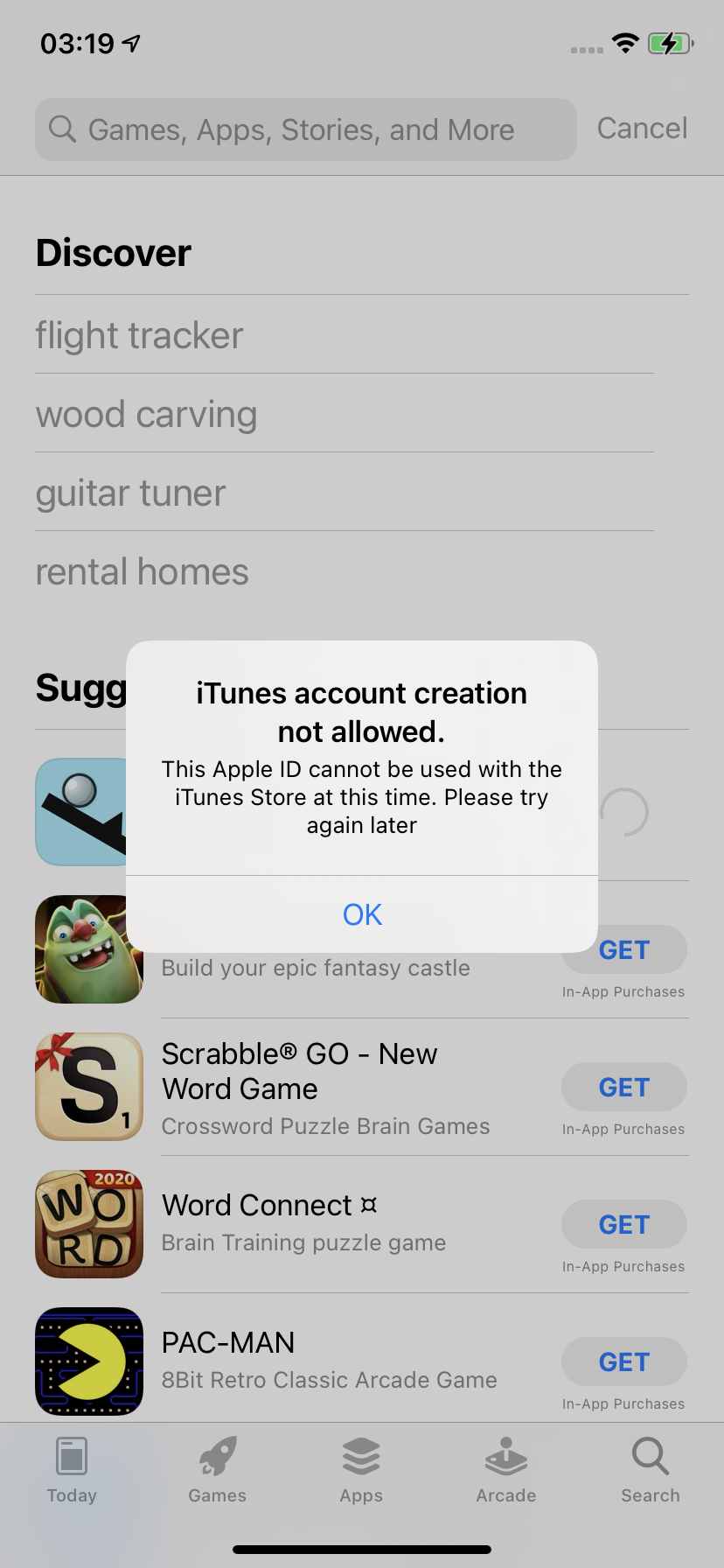 Is it possible to solve "iTunes account creation not allowed" problem?