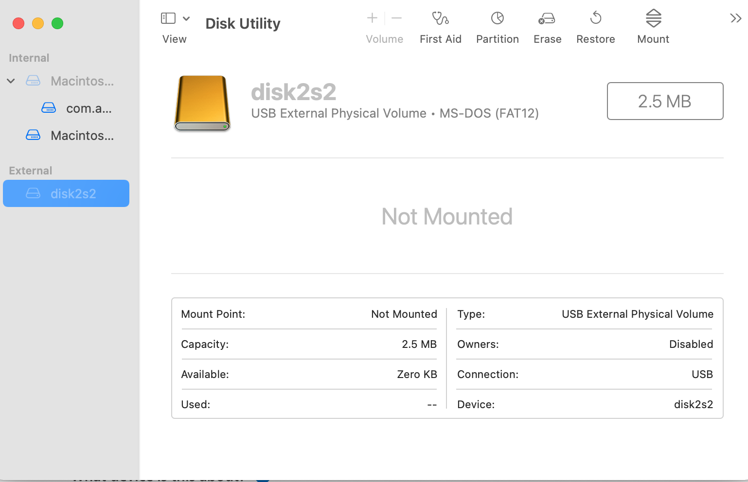 I don't have another computer to try it on but other USB drives work on this mac. Yes, it has worked in this mac before. It's 16gb but as U can see in image, Disk Utiliy only shows 2.5 Mb.