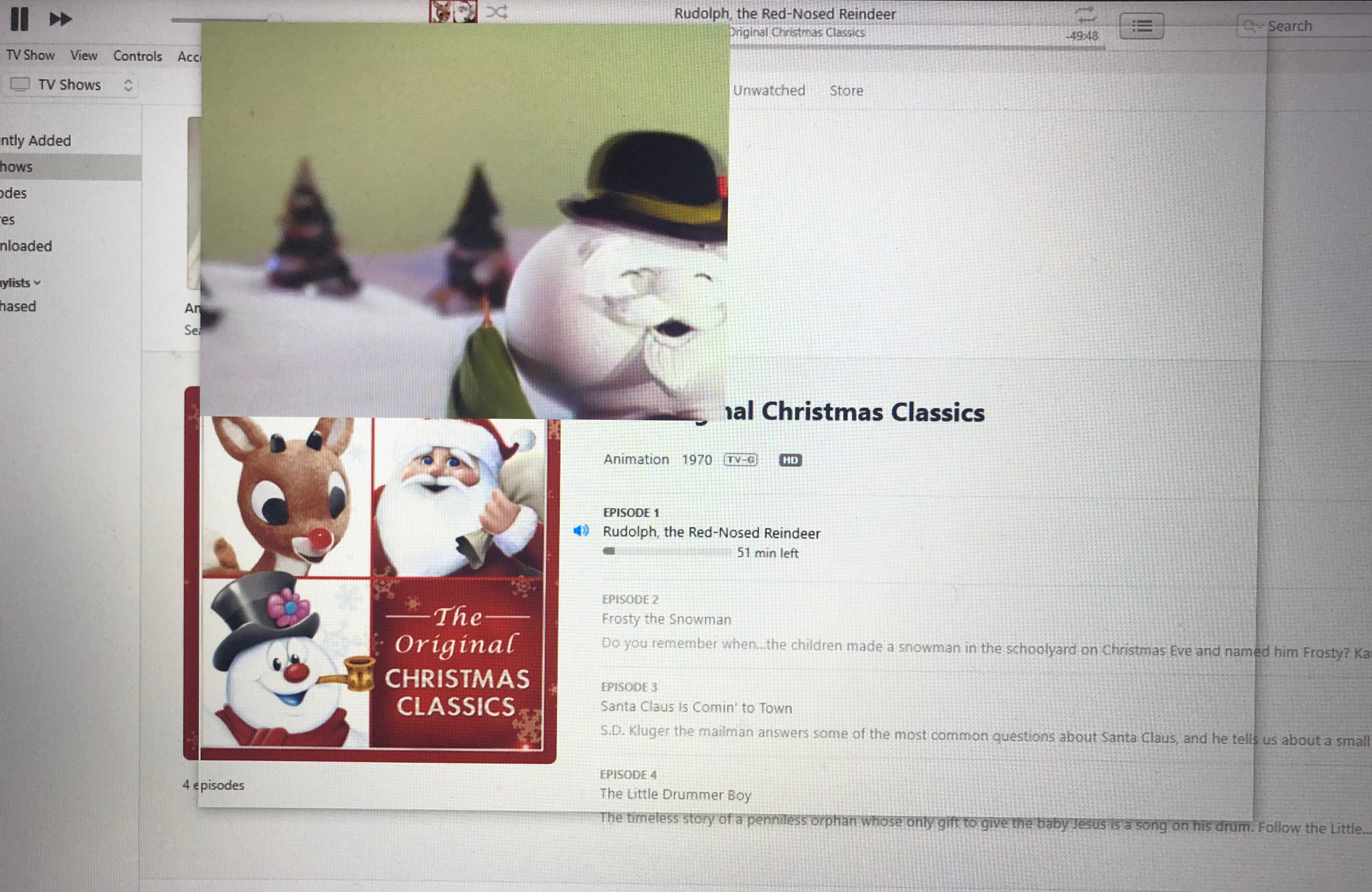 When trying to watch a movie or TV show, iTunes will only display the top left quarter of the video. The rest of the window is clear. For some reason I can't screenshot or screen snip the window either, it shows up as entirely clear in the screenshot. I had to take a picture with my phone to show you.