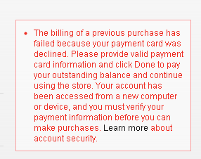 but now i m facing your payment method was declined & update your billing info