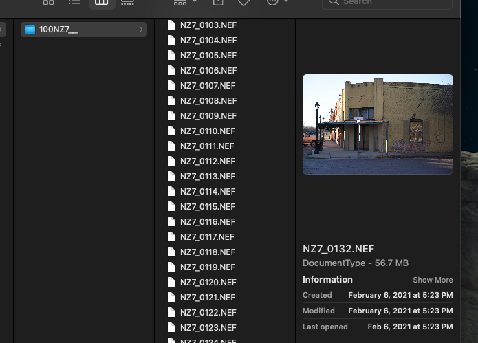 Here is a screenshot of finder looking directly at the memory card. Pretty sure Apple will complain if I try to upload a 51mb raw file to this post.