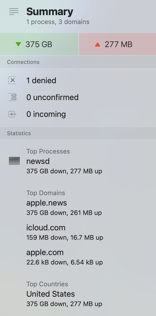 And specifically the downloaded traffic occurred with hostnames apple.news and c.apple.news. Both have valid signed certificates by Apple according to Little Snitch.
