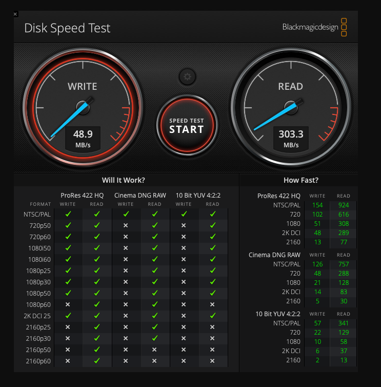 *the reason I am asking this is if your 5Big (whatever) is performing differently than mine - I have done 2 failed drive swaps over the years and although I have replaced with IronWolf, maybe I have introduced something incompatible or less optimized. Nonetheless, the LaCie Techs cannot discern this and the drive currently does do 400+/400+ on the Intel and 55/270 on the M1.