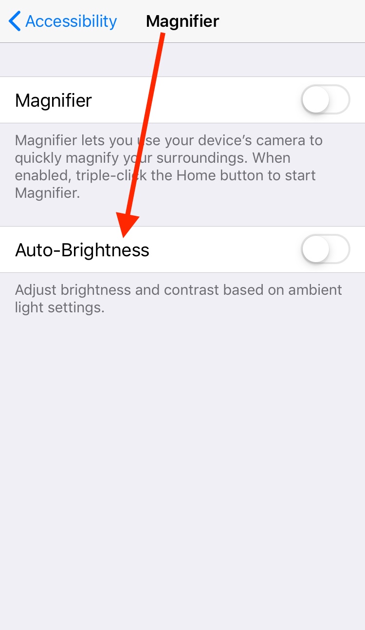 "IPhone 6s Plus brightness issue: Thanks, but in the menu item of the magnifier, there is also no auto brightness slider. The auto brightness item has completely disappeared from the iPhone menu"