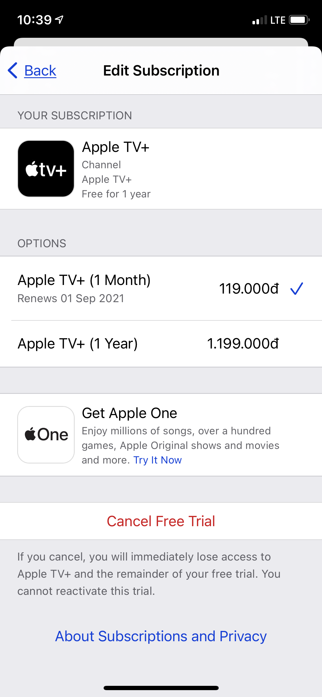 Why apple tv one keep charging me while my apple 1 year free is still eligible.