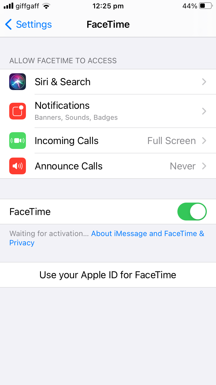 2. Go to Settings > FaceTime and turn off FaceTime.