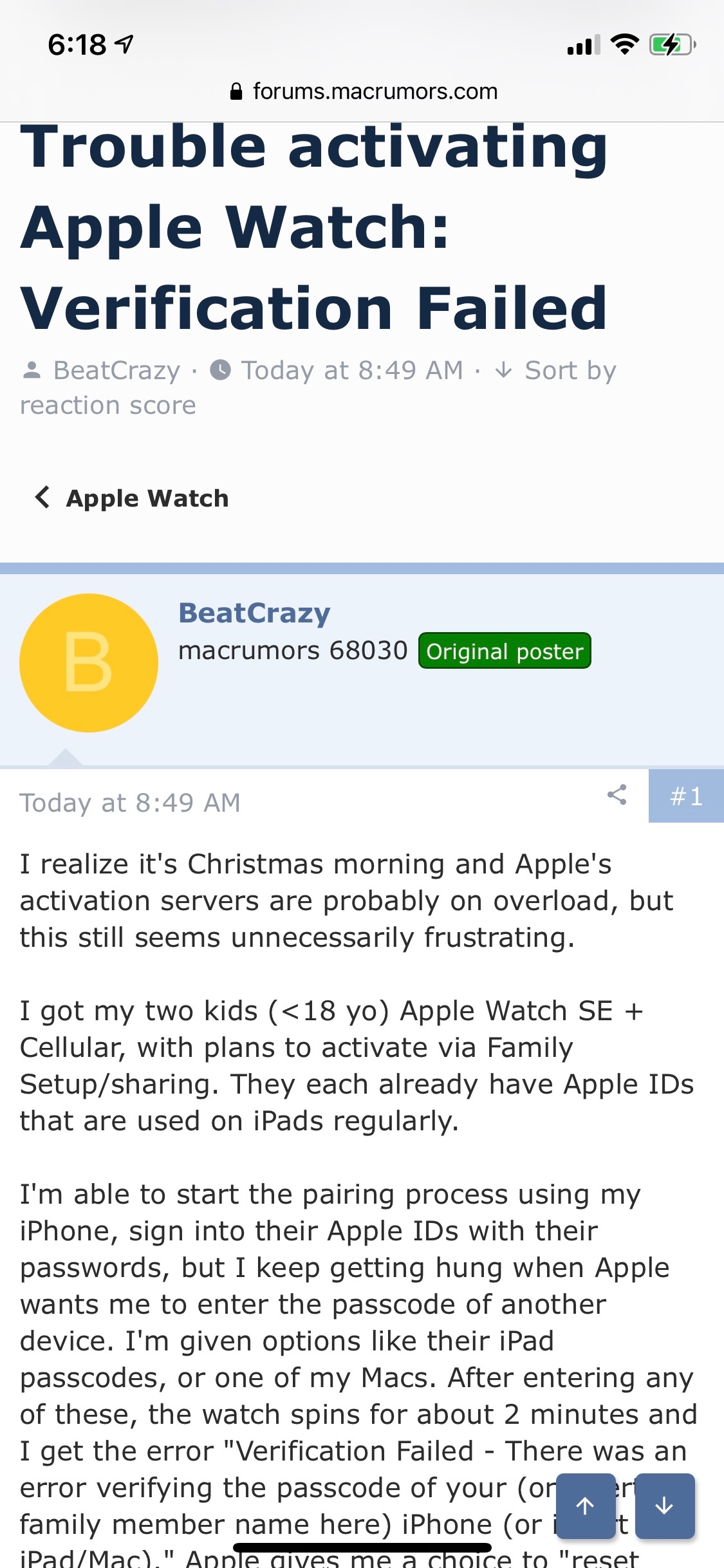 Apple Watch SE won’t complete setup and keeps asking for my iPad password. When entered, it says unable to verify even though it is definitely the correct password.