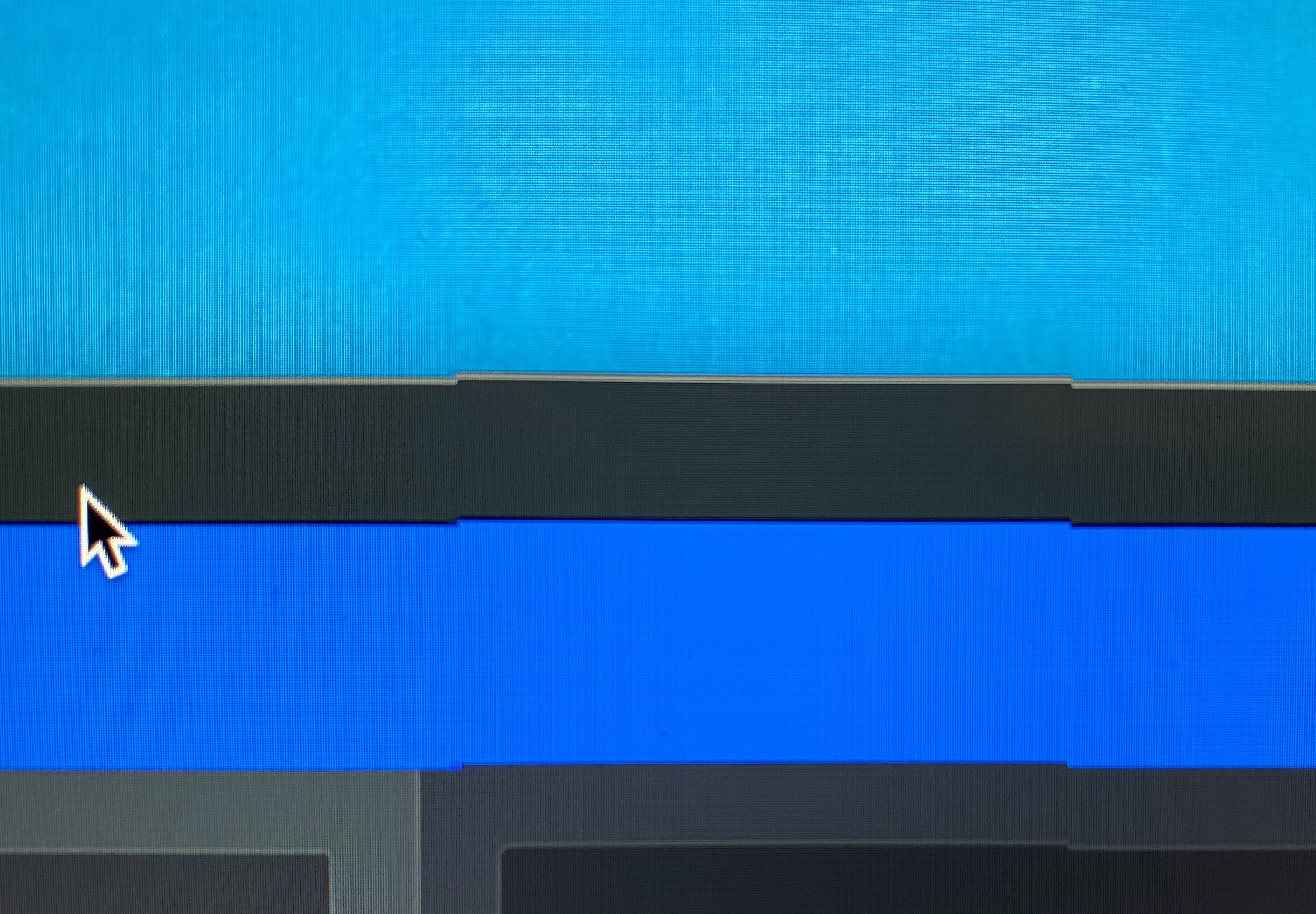 The affected area is a maybe one inch wide band just left of center that runs the full height of the screen. All pixels in that band are shifted maybe two or three pixels upward. I've attached an image.