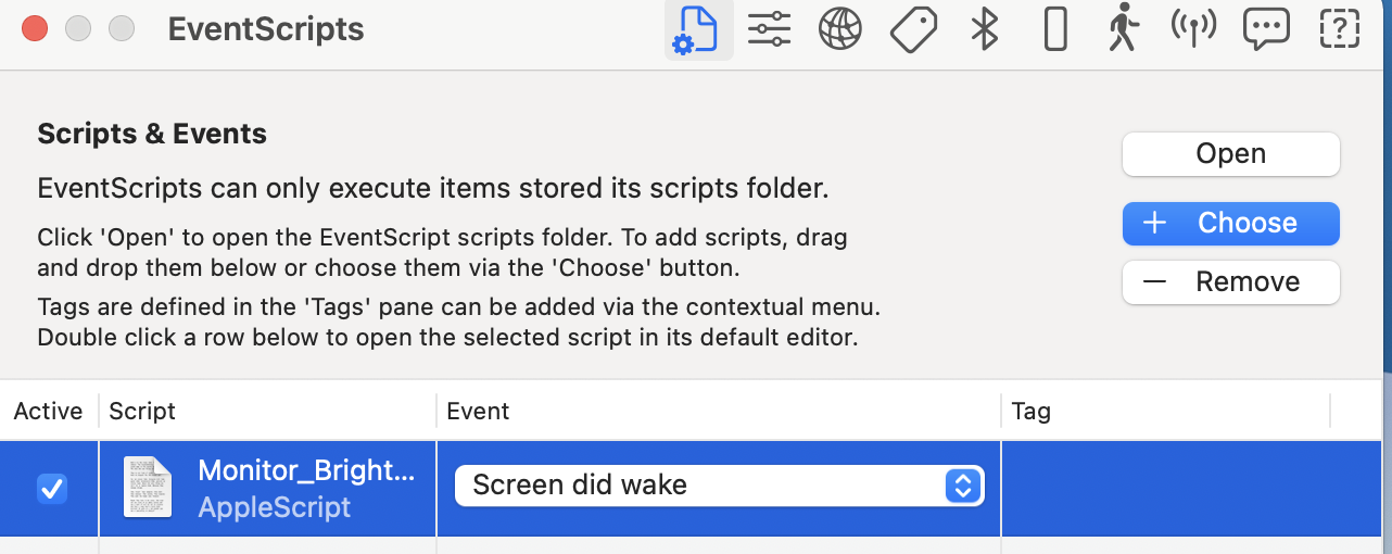 • As Event select in the dropdown menu "Screen did wake" or "Computer wakes"